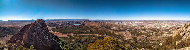 Mirad al fondo la sierra de Mojantes y apenas distinguible, la inconfundible silueta de la sierra del Carro y por supuesto, las omnipresentes canteras de mármol de la Puerta, el campo de Cagitán y Cambrones y alrededores. ¡Quién me iba a decir a mí, aquel primer día en que me adentré por La Jabalina, Los Villares etc, y tropecé con las vallas, que iba a terminar en lo alto del Almorchón...? Es que, se podría decir, que los caminos del senderista antojadizo son inescrutables.